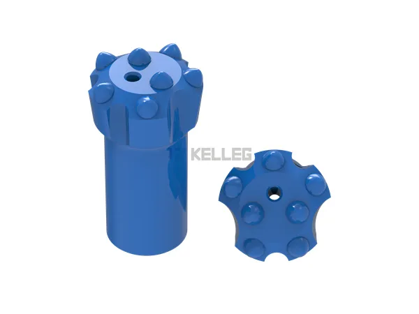 The button shape is the most commonly used structure for threaded bits, so it is divided into an ordinary flat face, retrac flat face, reaming semi-dome, reaming guide, ordinary drop center, and retrac drop center, etc.